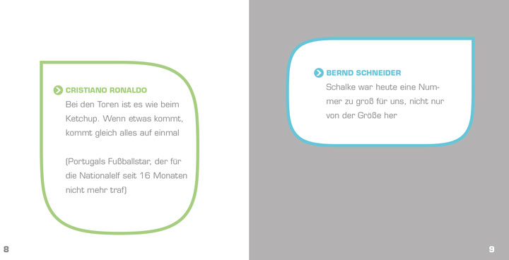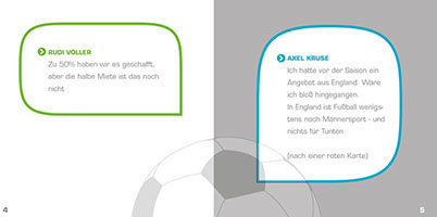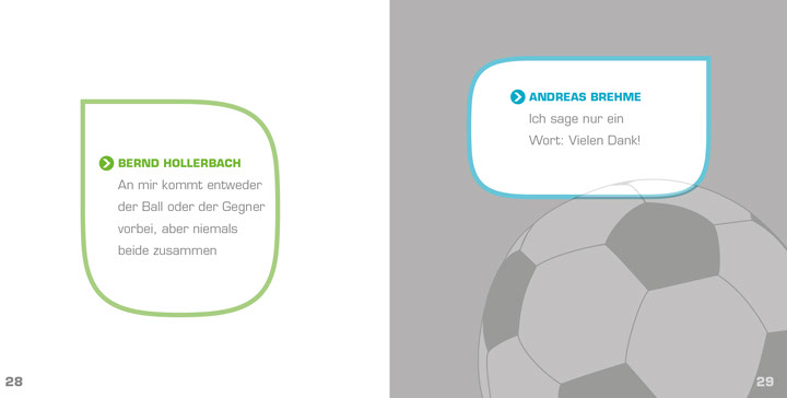Das Highlight neben Bierfass, Spielplan, und diversen Giveaways ist das Heft mit einer Fußball-Zitate-Sammlung.