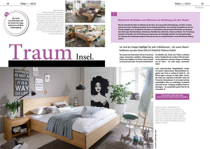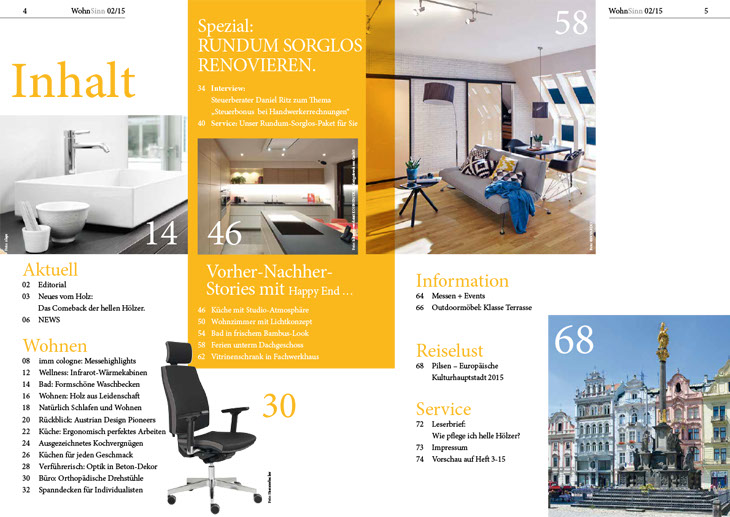 Das WohnSinn Magazin begeistert den Leser mit aktuellen Wohntrends, interessanten Produktneuheiten und allem rund um das Thema Holz. Herausgegeben vom TopaTeam, seit über 25 Jahren Deutschlands größter Schreiner und Tischler Verband.