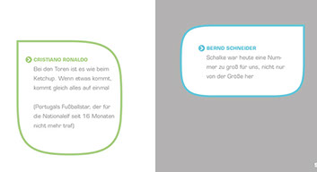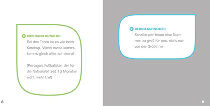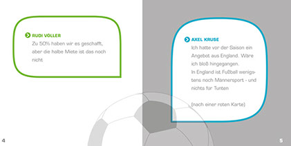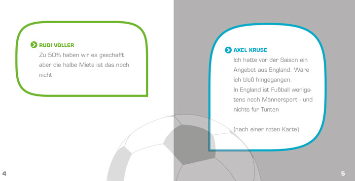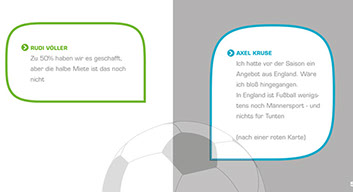Das Highlight neben Bierfass, Spielplan, und diversen Giveaways ist das Heft mit einer Fußball-Zitate-Sammlung.